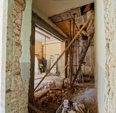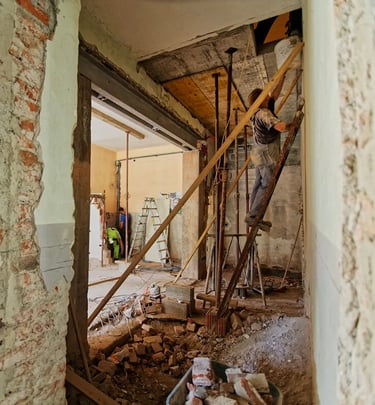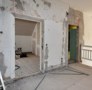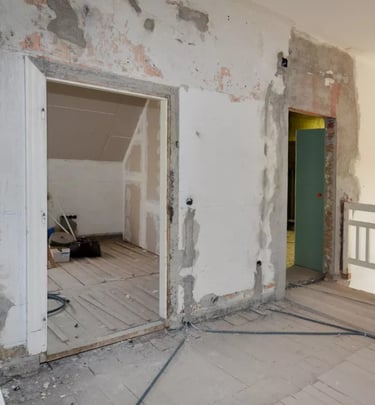 Mur porteur, dalles, escalier, poteaux, poutres, ..