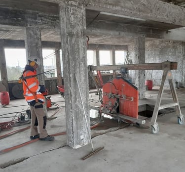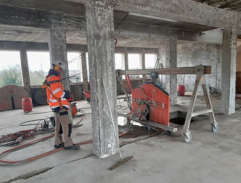 Découpe et perçage du béton avec précision pour ouvertures, passages techniques et modifications structurelles.